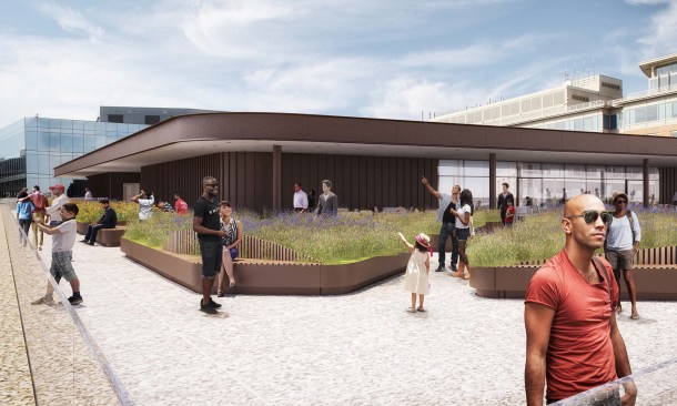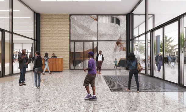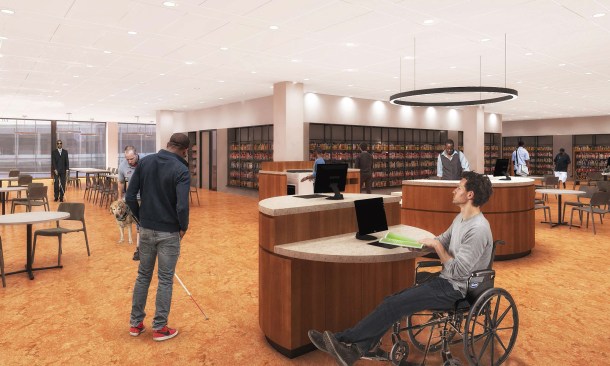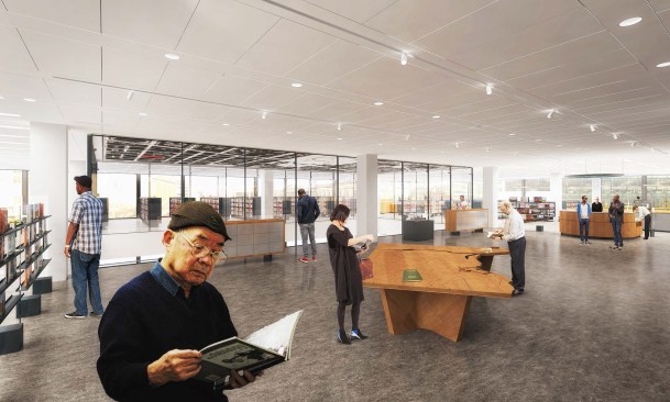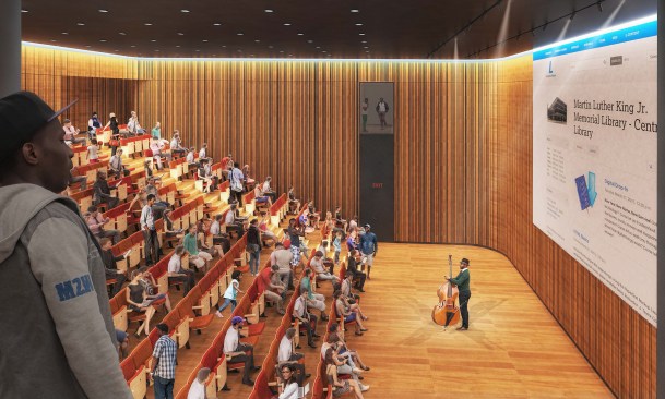 Since the District of Columbia Public Library selected the team of Mecanoo and Martinez+Johnson Architecture to renovate the system’s central library in early 2014, the client and architect have been continuing to refine the project: a bottom-to-top modernization of the Martin Luther King Jr. Memorial Library, which was designed by Ludwig Mies van der Rohe and opened in 1972, three years after Mies’s death. It’s nearing the end of the road for the project, design-wise. The renderings seen here come from the latest materials submitted to the National Capital Planning Commission, which is scheduled to review and give final approval of the project’s plans today. [*Update 10/6: The commission unanimously approved the design.]