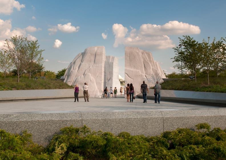 The most recent addition to Washington’s silent city of civic and national monuments and memorials, the Martin Luther King Jr. Memorial offers views of monuments to Jefferson, Washington, Lincoln, and Roosevelt. Many of these monuments—framed by nature and organized along view corridors—are landscaped at a disadvantage to pedestrians approaching from other than a specific direction. The approach to the Martin Luther King Jr. Memorial, however, is open and embracing, perhaps most similar to the path of the Vietnam Veterans Memorial, which allows for entry from either end.