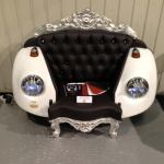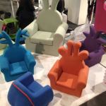 Instead of returning to Rho, we wandered back into the Zona Tortona to see more of the Fuori Salone shows. We were not disappointed. The Superstudio Più Temporary Museum for New Design was even larger and richer than we’d surmised when we saw it during the preview. The nationally- and regionally-themed booths gave an interesting insight into the cultural climates of very different countries: take, for example, the comfy-classy style of Swedish firm Färg & Blanche’s F-A-B Chair, as compared to the dark and mysterious (and un-photographable, alas) fireplace installation from Poland’s Dorota Koziara. Not only that, but there was Superstudio’s freedomDesign exhibition several blocks away, featuring an even more offbeat grab-bag of product makers from around the world. For the kids, there was Junghye Yoon’s colorful Honeydew Rabbit chairs, definitely the most huggable design we’ve seen yet; for grownups, there was the equally eccentric Glamour Beetle by Andrea Colombo for Zac Glamour Design, comprising the front end of a VW bug in collision with a baroque fauteuil.