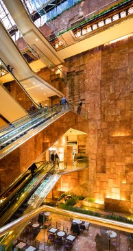 Which brings us back to Trump Tower. Its atrium, in fact, connects directly to a much nicer, more generous POPS, the atrium of 590 Madison Avenue, originally called the IBM building, which was designed by Edward Larrabee Barnes. Completed a year earlier than Trump Tower, the IBM building has long been treasured for its daylight-filled public room, with its stands of bamboo and plentiful seating. (Now, of course, the building is almost as heavily barricaded as its illustrious neighbor, lest a truck bomber decide to barrel from one atrium to the next.)