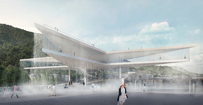Four firms have released proposals to redesign Italian beverage company S. Pellegrino’s factory in northern Italy. The shortlisted finalists include Copenhagen- and New York-based Bjarke Ingels Group (BIG), Dutch firm MVRDV, Oslo, Norway- and New York-based Snøhetta, and Italian Architetto Michele De Lucchi (aMDL). The renderings were displayed at an event held in San Pellegrino Terme—a commune in the province of Bergamo, Italy—where the carbonated mineral water drink and fruit sodas have been made since 1899.