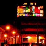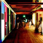 But the real drama is in the image the terrace sends out to the city. When the lights go on, the plastic panels create a colorful glowing beacon for the gritty industrial neighborhood and the freeway beyond.