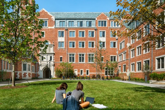 I think it has to do with the vocabulary of the buildings, the details, the fact that there are multiple entryways, so you don’t have gigantic walls in the courtyards, unpenetrated. The fact that you have a vocabulary of materials that takes the light in an interesting way. I mean, if you do the building with a wall of glass, as other universities have done for residential buildings—I can think of one, but I will not mention it—it’s completely abstract and there’s no sense of scale. Built into the vocabulary here, like any rich vocabulary, spoken or architectural, there are all the scalar elements. The scale also comes from the intricate plan of small and big courtyards, which was not as easy to achieve as you might think, especially in the Benjamin Franklin College because the sides are triangular. But we used the triangle as a stimulus for making interesting spaces, not as an obstacle to it.