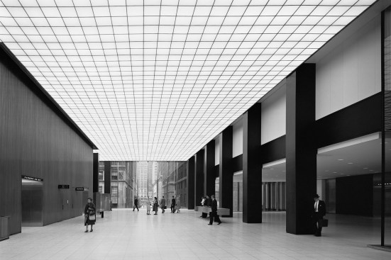 The Union Carbide Building (also known as 270 Park Avenue) is one of the many boxes that line Park Avenue. Built in the 1960s and 1970s, this row of slabs consists of specimens of corporate containers that are better than the next generation of such homes for capitalist bureaucracies that rose mainly on adjacent and less grand streets, such as Lexington and Third Avenues, and later Sixth and Seventh Avenues. In this first row of reasonably well-designed but unremarkable buildings, what distinguishes de Blois’ particular design is, more than anything else, the clarity of its proportions. By the time the architect penned this structure for Skidmore, Owings & Merrill (SOM), she was a seasoned designer and her firm knew how to control the grid both in detailing and in terms of the overall consistency of the structure. You can see this from the ways in which the structure translates into the visual organization of the façade to the way that formative grid reverberates in the office interior, with its luminous ceiling and partitions all following that overall order.