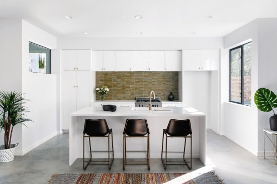 Inside, clean lines, white finishes, and black accents make the two- or three-bedroom floor plans innately modern. Although all four buildings use similar materials and forms, each unit boasts its own unique characteristics, includes proper sound transmittance ratings and cross-ventilation, and promotes social engagement among neighbors.