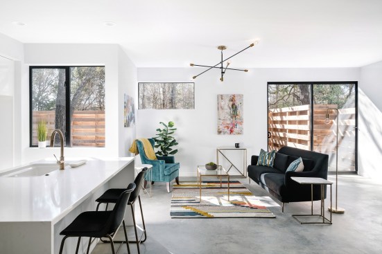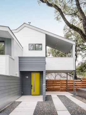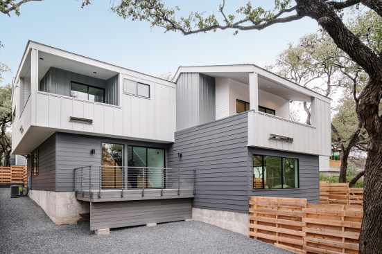 On a heavily wooded property in Austin, Texas, local architecture firm Mark Odom Studio subdivided a 1-acre, single-family home site into four duplex lots, or eight individual residences, with an emphasis on the property’s established trees.