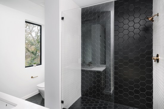 “We believe that architecture should complement the site by celebrating its surrounding and contextual amenities, such as topography, trees, and views,” says Mark Odom, founding principal at the firm. “Existing trees were used not only as focal points for each building but also for various interior rooms, nestling each structure around the patterned landscape.”