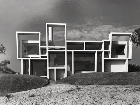 “A composition of considerable spatial variety with vertical and horizontal interpenetration of spaces clearly defined inside and out.” Rudolph said of the Milam Residence in 1970. “Gone are the earlier notions of organization through regular structure with subdivisions of space freely spaced. Spatial organization has taken the place of purely structural organization. Floors and walls are extended in elaborated forms toward the views, thereby making of the facade a reflection of the interior space. The brises-soleil also serve as mullions for the glass, turning the exterior wall into a series of deep openings filled only with glass. The exceptional wild Florida site 60 feet above the Atlantic Ocean is a counterfoil to the geometry of the structure.”