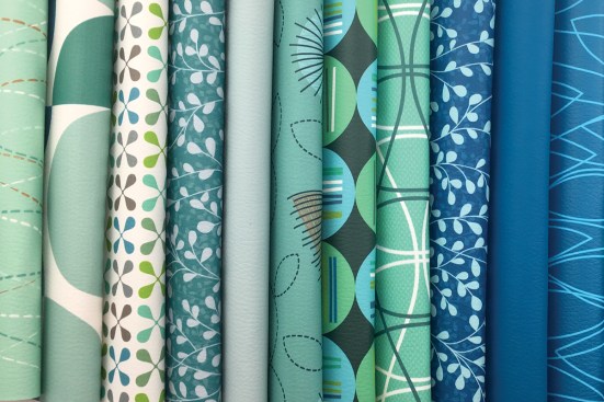 Decorated with nature-inspired motifs by Pattern Pod, this collection of faux-leather upholstery is PVC-free and composed of composed of 55% TPE, 35% polyester, and 10% cotton. The upholstery is capable of withstanding more than 200,000 double rubs on the Wyzenbeek scale. Available in 10 colorways. enviroleather.com