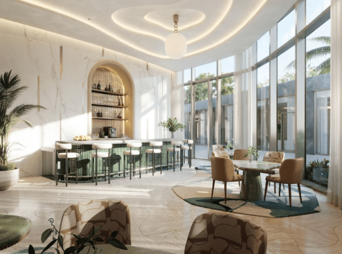 Amenities, totaling more than 25,000 square feet, reflect a resort-level approach to wellness and leisure. Features include a fitness pavilion with panoramic views, a hammam spa with plunge pools and treatment rooms, pickleball and paddleball courts within lush gardens by Enea Landscape Architecture, and a suite of family and social offerings, including a cocktail lounge, a chef-driven dining program , and a kids’ playroom and VR game simulator. The project is expected to be completed in 2027.