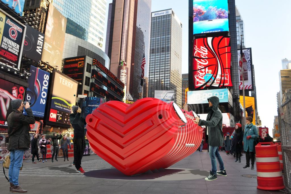 Since 2009, a temporary heart-themed installation has been placed in New York’s Times Square to coincide with Valentine’s Day. Times Square Alliance holds an annual design competition to decide on the installation, and past winners have included a clear, glowing cube by Bjarke Ingels Group and an ice sculpture by Moorhead & Moorhead.
