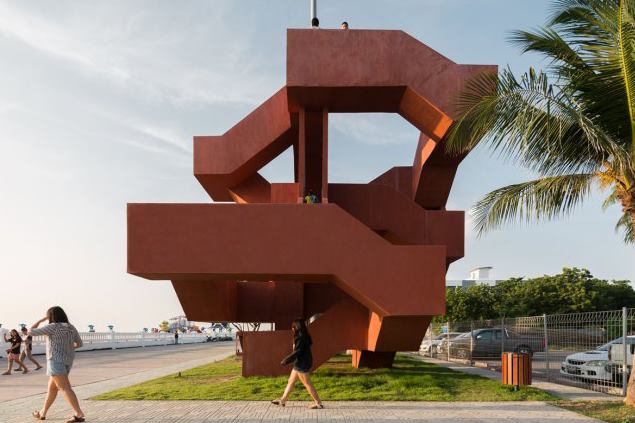 To blend in with its site, the tower is no taller than the tree line of the public park. At the top, it serves as an observation tower overlooking sports activities and the Gulf of Thailand. Designed with voids in between the flights of stairs, the tower allows for new trees and plants to penetrate in years to come, encouraging people to learn about the indigenous plants of the area.