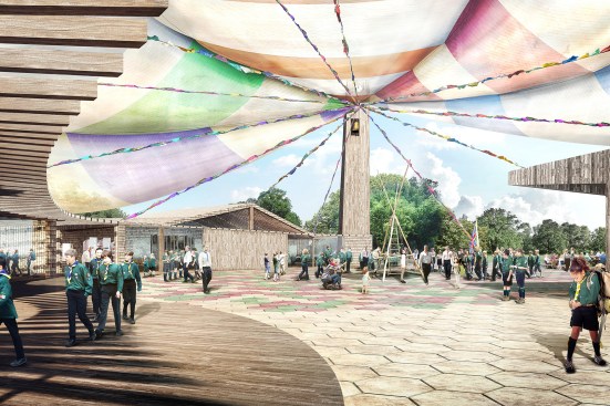 A massive, circus-like tent will be the focal point for The Scout Association’s (TSA) new museum in Chingford, London. Local firm Tate Harmer won a competition to design a museum that highlights the organization’s heritage. The new project will reside in the historic Gilwell Park—the original 1919 training location for the Scouts—and will replace the Scout Adventure Center, which accommodates TSA functions and national events.