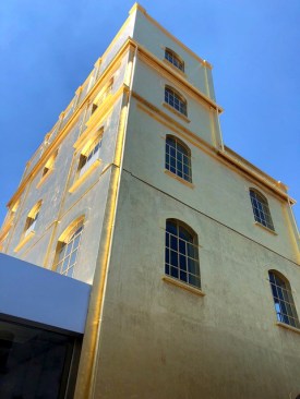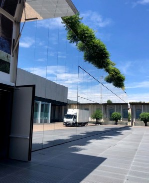 However, if the description above makes you think that you are going to find a set of buildings whose expressive forms or novel materials blaze forth from their run-down setting, you will be disappointed. But you shouldn’t be. It is exactly the seeming normality of most of the structures that makes the trek to the Foundation so worthwhile. The one piece of derring-do, the way a new tower of galleries leans on one canted column that jams down through an existing building towards its foundation, is also the Foundation’s weakest moment. Only the matter-of-fact manner in which the column inhabits the old space, working as just another piece of material around which the exhibits have to find their way, saves this moment of otherwise useless look-ma-no-hands.