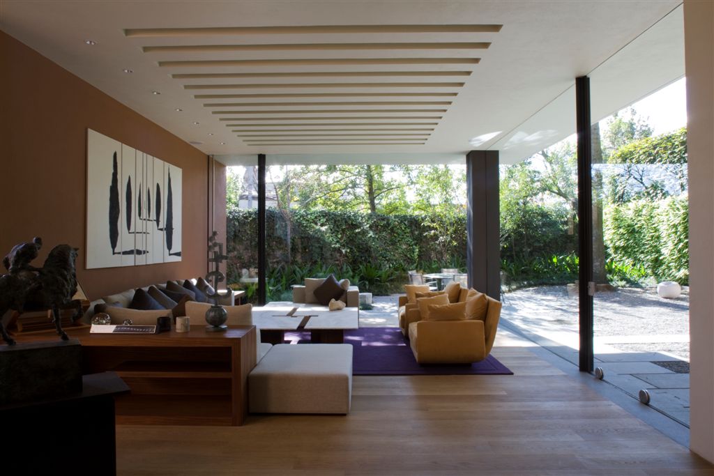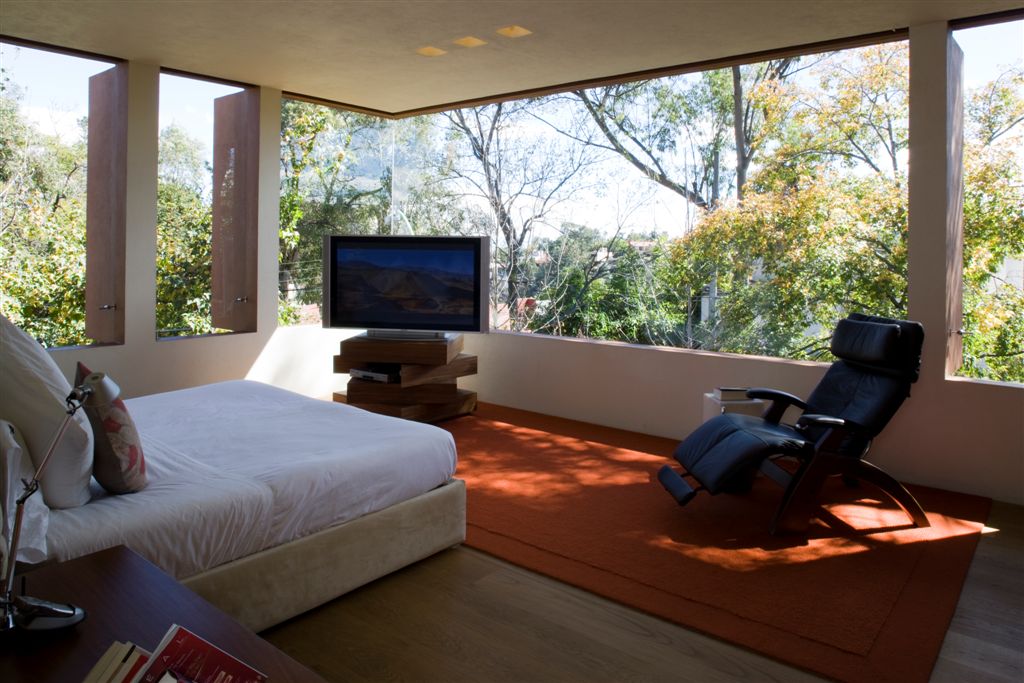 In this case, though, there is less weight and more expanse than in Ricardo’s Legorreta’s work. The intersections of planes are more pronounced and the cut-outs crisper, making the house seem less like a retreat carved out of a solid and more like an assembly of interconnected places to live. Perhaps the fact that Victor Legorreta worked for architects such as Fumihiko Maki influences that development.