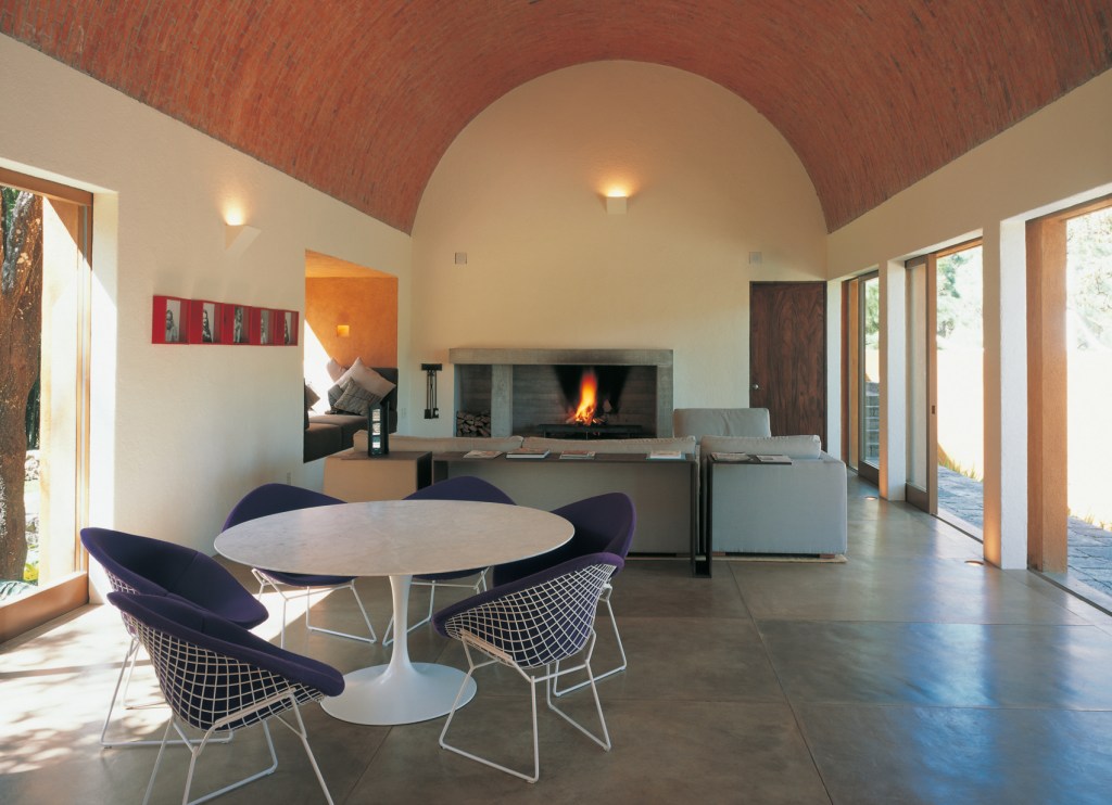 At the weekend house Victor Legorreta designed for himself in Valle de Bravo, the community around a humanmade lake about two hours from Mexico City that functions like the city’s Hamptons, the drawing out continues to a sequence of spaces, from the entry porch, through a shift towards one axis from which one sees the barrel-vaulted living room, past a courtyard and bedroom wing, to another slight shift of axis, a few turns, and a continual opening up of diagonal vistas.