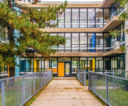 The Anthony Overton Elementary School, designed by Perkins and Will in 1963 and now closed, was recently listed on the National Register of Historic Places