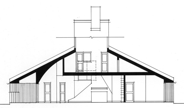 In his Complexity and Contradiction in Architecture (originally published by the Museum of Modern Art in 1966), Robert Venturi described the house he designed for his mother. “The inside spaces, as represented in plan and section, are complex and distorted in their shapes and interrelationships,” he writes. “They correspond to the complexities inherent in the domestic program as well as to some whimsies not inappropriate to an individual house. On the other hand, the outside form—as represented by the parapeted wall and the gable roof which enclose these complexities and distortions—is simple and consistent: it represents this house’s public scale. The front, in its conventional combinations of door, windows, chimney and gable, creates an almost symbolic image of a house.”