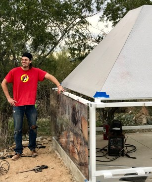 Eventually, the shelters became more experimental, with shapes that range from tents hanging from poles, to free-form canvas shading structures, to rammed-earth enclosures. After years in which only some students chose to design and build their own shelter, that construction is now a mandatory graduation thesis “proof of concept,” and Quittenton and classmate Jose Amaya were the first to try out the new format.