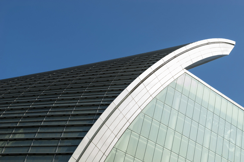 The monumental shell-like structure redefines the connection between the river and the pedestrian boulevard, constructed from 22 seven-story high concrete ribs and over 10,000 panels of glass.