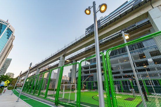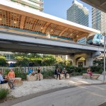 Arne area lights from Landscape Forms design partner Urbidermis Santa & Cole serve as a connecting element in the park. “The lights provide a continuous rhythm and act as a branding element for The Underline,” says HLB lighting designer Simi Burg.