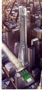 On Aug. 6, three teams—Rogers Stirk Harbour + Partners (formerly Richard Rogers Partnership) and Forest City Enterprises with MacFarlane Partners; Skidmore, Owings & Merrill and Rockefeller Group Development Corp.; and Pelli Clarke Pelli Architects and Hines—presented their solutions to the city and a nine-member selection jury. Offering sustainable aspects from wind-powered turbines to LEED Platinum certification, each proposal also included a soaring tower that would rise well above the city’s existing 550-foot height limit (the city has embarked on a feasibility study to assess whether the tower could reach as high as 1,200 feet).