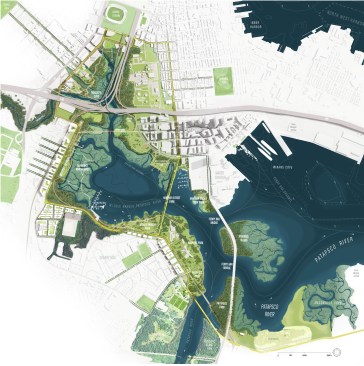 Rotterdam, Netherlands–based urban design firm West 8 has been named the winner of the Middle Branch Waterfront Revitalization Competition, which called for submissions to restore the area’s wetlands and connect the surrounding neighborhoods with recreational parks and trails. The firm’s winning proposal will bring new life to an 11-mile stretch of Baltimore‘s Patapsco River shoreline, “recreat[ing] and redefin[ing] the blue green heart of Baltimore,” according to a press release from the firm.