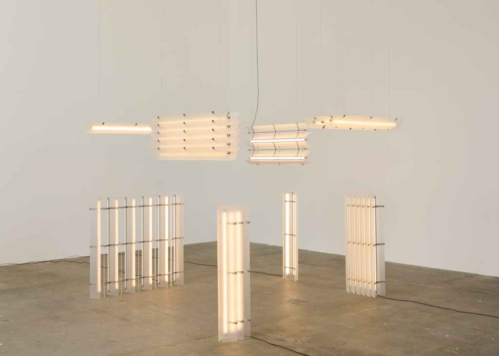 A modular lighting and furniture series built from steel brackets and frosted acrylic plates, Strata grows in multiple orientations. Its intuitive modularity echoes natural systems of replication and branching.