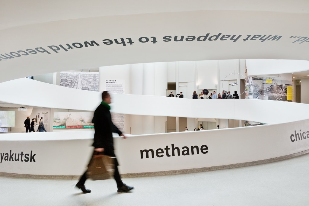 Koolhaas isn’t wrong about the significance of Countryside. I think the interplay between urban and rural, between the artificial and the natural, deserves all the attention we can give it. Everything we’re dealing with at this moment in history—with its apocalyptic buzz—is about the conflicts between natural systems and man-made ones, between our needs and the needs of the planet. A museum show that tackles this most fraught relationship should be a powerhouse: exhilarating and jaw-dropping. This show is nothing like that. It offers little that is moving, or visually satisfying—an unfortunate outcome, because I greatly admire Irma Boom. She specializes in books that are overstuffed with type and images, including another Koolhaas project, The Elements of Architecture (Taschen, 2014), which has more than 2,500 pages and weighs nearly 8 pounds. But somehow, her technique doesn’t have the same magic on the Guggenheim walls as it does on the printed page. No image or idea gets the breathing room generally given to objects in museums. It is all collaged together in a way that is typical of today’s concept-heavy exhibitions. It implies that there is too much to say to privilege any one thing, too many ideas to give pride of place to any of them. There are some good photos (the ones of Tiksi, a Russian settlement near the East Siberian Sea, shot by Evgenia Arbugaeva, a photographer who spent her childhood there, are gorgeous). But this isn’t a show that invites you to focus on aesthetics.