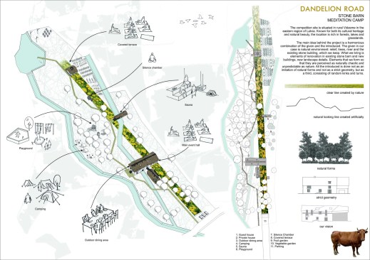 The winners in the Stone Barn Meditation Camp Competition have been announced, with Bondarenko Group of Kharkov, Ukraine, taking first place. According to the jury, the winning design, by design team members Yulia Fedorenko, Aleksandr Fil, Anna Beketova, and Bogdan Bondarenko, features an effective use of space and sustainable energy, and is in context with the existing stone barn’s rural and natural landscape.