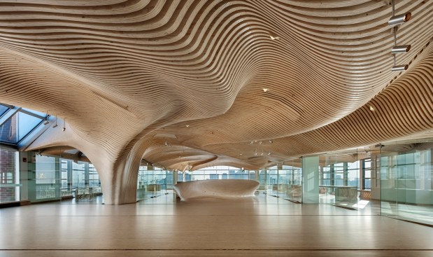 Mind & MatterPutting Place Before Products in Office DesignAn undulating plywood canopy upends the typical corporate workspace for one Boston financial firm, evidencing a returned focus to the architecture of office interiors.6 MIN READ