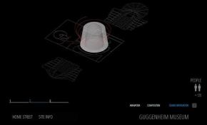 The installation involves actual sound recordings of the interiors of five iconic buildings and animated analysis of the aural characteristics of those spaces.