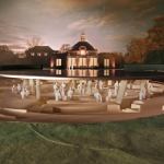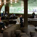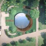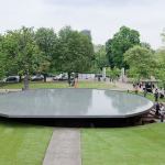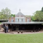 Tomorrow, the latest Serpentine Gallery Pavilion opens to the public in Kensington Gardens. Jacques Herzog and Pierre de Meuron describe their Basel, Switzerland–based firm’s collaborative effort with Chinese contemporary artist Ai Weiwei for their pavilion in London as an archaeological excavation of previous pavilions. Their work exhumes underpinnings of the 11 past exhibits on the same site, with columns extending from a single remnant of each to support the 2012 pavilion’s roof: “On the foundations of each single Pavilion, we extrude a new structure (supports, walls) as load-bearing elements for the roof of our Pavilion—11 supports all told, plus our own column that we can place at will, like a wild card,” say the architects. This roof, which collects a thin, reflective layer of rainwater, can also be drained to form an elevated platform for events and happenings. Beneath it, the designers sculpted a new topography out of the reclaimed foundations and covered the entire surface in cork, a material that the trio chose for its feel and smell, as well as its sustainability.