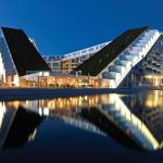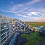 Designed by Copenhagen-based BIG, the figure-eight-shaped, mixed-use 8 House contains 475 housing units. Apartments occupy the top floors, where they benefit from sunlight, fresh air, and views. Commercial spaces below merge with life on the street. Two sloping green roofs reduce the heat-island effect, and visually reference adjacent farmlands to the south.
