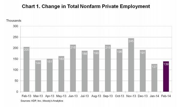 The February employment report released by ADP and Moody's Analytics represents a slight increase in monthly job growth.