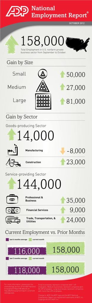 For instance, while the report of new construction jobs is great, that 23,000 translates into only an 0.40 percent uptick in construction jobs. Sure, this might not seem like something to write home about, but it’s still (potentially) 23,000 construction workers who weren’t working last month. Also, that figure is ADP’s second highest monthly jobs added in the construction sector since the end of 2006. (December 2011 saw an increase of 31,000 construction jobs.)