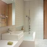 The unit features a simple palette of materials to convey a sense of calm and relaxation.