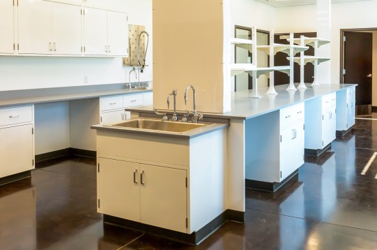 Golightly came face-to-face with that stark question on the SLC MAD project. One of the chief interior design features of the Level 2 biosafety testing laboratory is extensive interior millwork. A natural all-wood aesthetic was appropriate to the mission and comfort of the researchers. “They were counting mosquitoes on plastic tables before this. To sit and look at a pile of mosquitoes and have to count male, female, male, female. It’s time-consuming. We wanted to make sure that their workstations were clean, that they were comfortable, that they would last,” Golightly says.