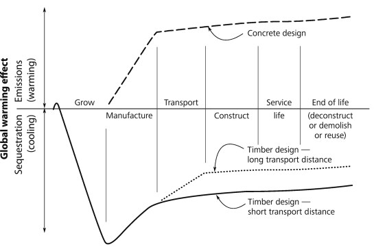 But what about buildings made of sky? Such a shift must invariably include the choice of carbon-storing materials rather than those whose manufacture is responsible for emitting carbon dioxide. Arup engineers Frances Yang and Andrew Lawrence present the case for using timber as a structural materialâan increasingly popular choice in the U.S. and abroad. While it is commonly known that wood is a more ecologically responsible material than steel or concrete, the authors detail the disparities using a study Arup conducted on a 12-story mixed-use project in Portland, Ore. Demonstrating that timber has a mitigating effect on global warming not only during its life as part of a tree but also throughout the lifespan of a building it supports, Yang and Lawrence reveal woodâs vast superiority over a similar design in concrete.