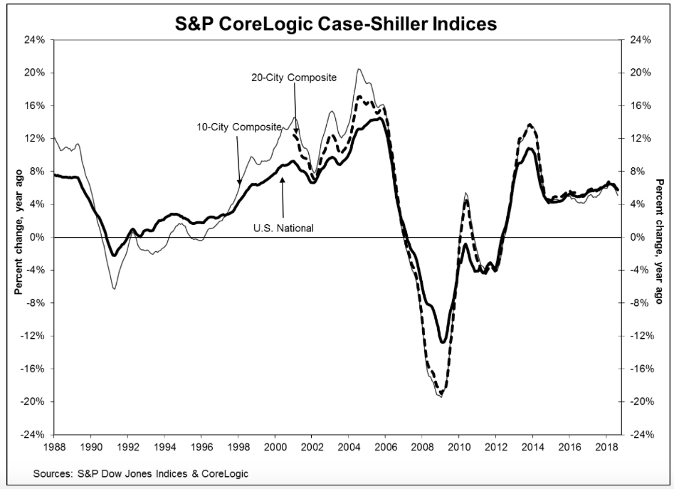 “There are no signs that the current weakness will become a repeat of the crisis, however. In 2006, when home prices peaked and then tumbled, mortgage default rates bottomed out and started a three year surge,. Blitzer said. Today, the mortgage default rates reported by the S&P/Experian Consumer Credit Default Indices are stable. Without a collapse in housing finance like the one seen 12 years ago, a crash in home prices is unlikely.”