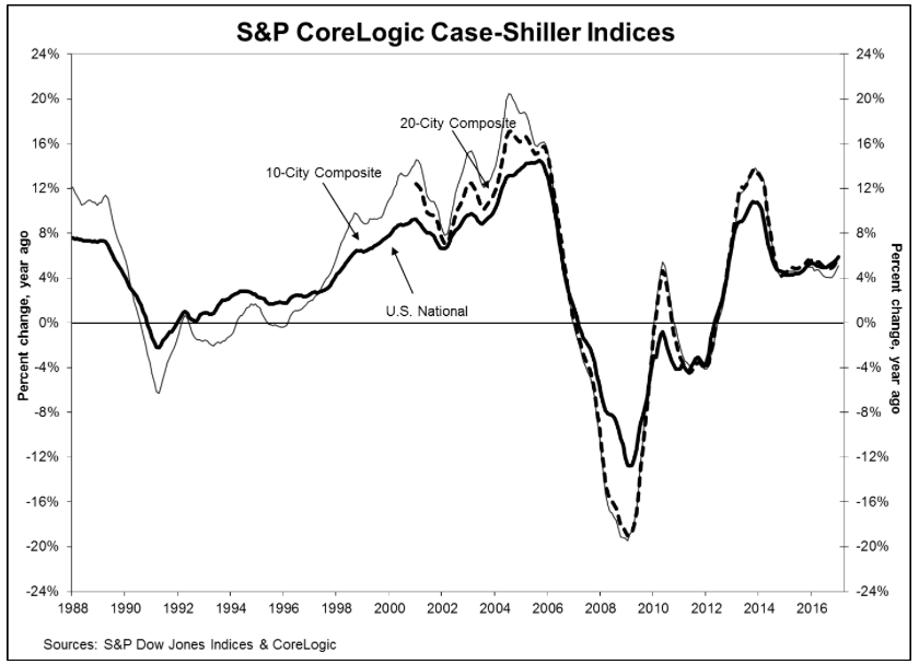 “Housing and home prices continue on a generally positive upward trend,” said David M. Blitzer, managing director and chairman of the Index Committee at S&P Dow Jones Indices. “The recent action by the Federal Reserve raising the target for the Fed funds rate by a quarter percentage point is expected to add less than a quarter percentage point to mortgage rates in the near future. Given the market’s current strength and the economy, the small increase in interest rates isn’t expected to dampen home buying. If we see three or four additional increases this year, rising mortgage rates could become concern.