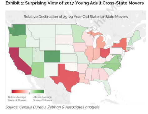 The most recent The Z Report carries an analysis entitled “What States are Magnets for Young Adults? You Might Be Surprised.” Among the key insights:
