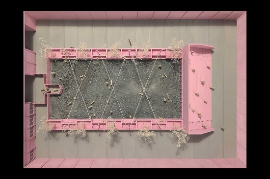 In this dog park proposal for the Little River neighborhood north of Miami’s Design District, a pink metal structure mimics the traditional dogtrot house, with a large, covered entry that leads into an expansive interior space. Amenities, including a café, bathrooms, seating, and landscaping, surround the central interior park.