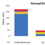 Heat gain from west-facing windows was countered by a tighter, well-insulated building envelope and thoughtfully zoned HVAC.
