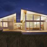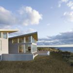 Inspired by the slope of the dunes, the home's rooflines fit elegantly into the site and soar upward to capture distant ocean vistas.