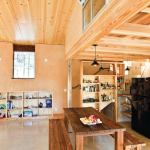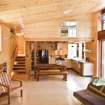The knotty pine ceiling is the inside face of the SIPs that form the roof.