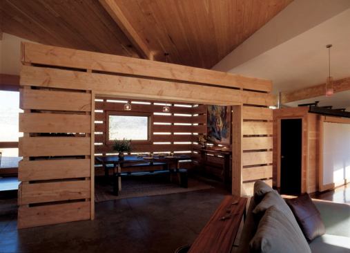 Inside the Johnson house, salvaged fir slats echo the exterior s…