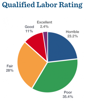 The vast majority of respondents (58.6%) suggested the availability of qualified labor was ‘Horrible’ or ‘Poor,’ while less than 15% indicated the availability was ‘Good’ or ‘Excellent.’ Additionally, only 7.5% of respondents said the availability of qualified labor had improved in the last six months, compared to the 28.8% of respondents who said the availability had declined in the same period. The negative responses towards the current state of qualified labor are smaller than previous quarters, GuildQuality said.