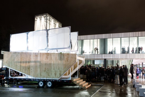 The Circus for Construction is a traveling event space for exhibiting works of architecture and art that can be hitched to the back of a truck. So far, it has traveled to Boston, New York, Buffalo, N.Y., and Ithaca, N.Y.