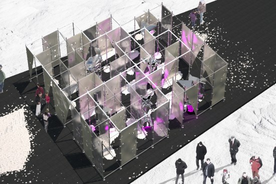 Lui and Reschke collaborated with New York–based designer Andrew Heumann on this 2017 Times Square Valentine Heart Design Competition proposal. Constructed like a scaffolding system, the team hoped to evoke movie theaters of the 1960s and 1970s that “allowed for romantic encounters in an era of necessary anonymity.”